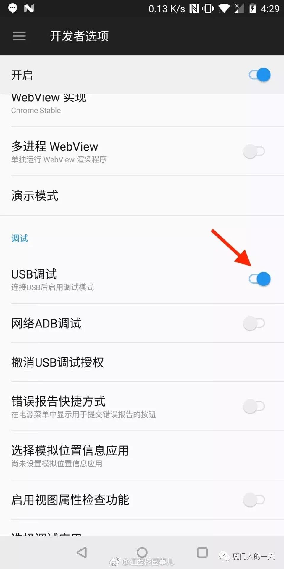 8、打开安卓手机的设置 - 开发者选项 - USB调试(如果没有开发者选项,可百度打开开发者选项的方法),用 USB 线连接手机和电脑,手机可能会弹出对话框,点同意;
