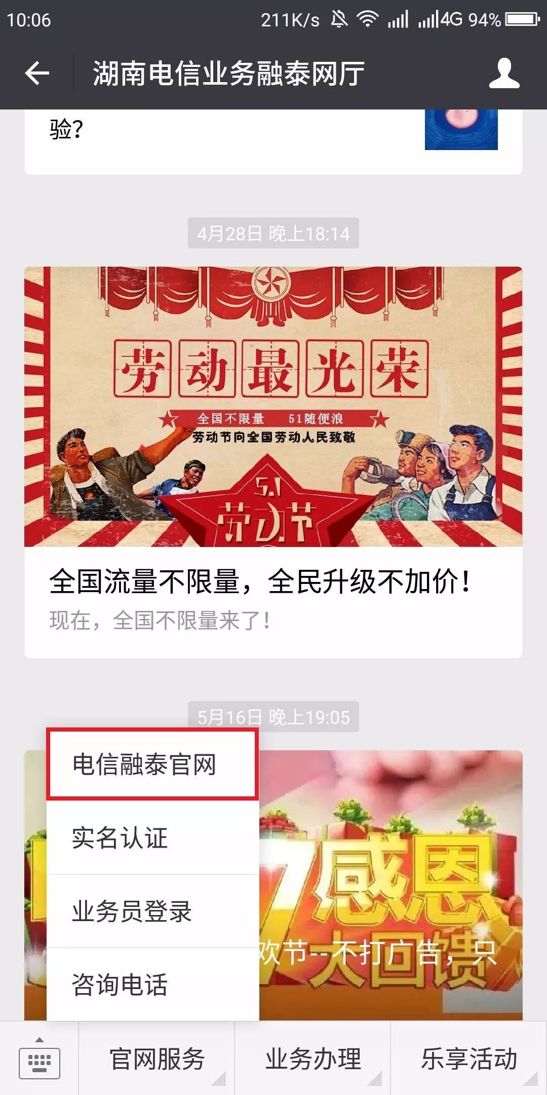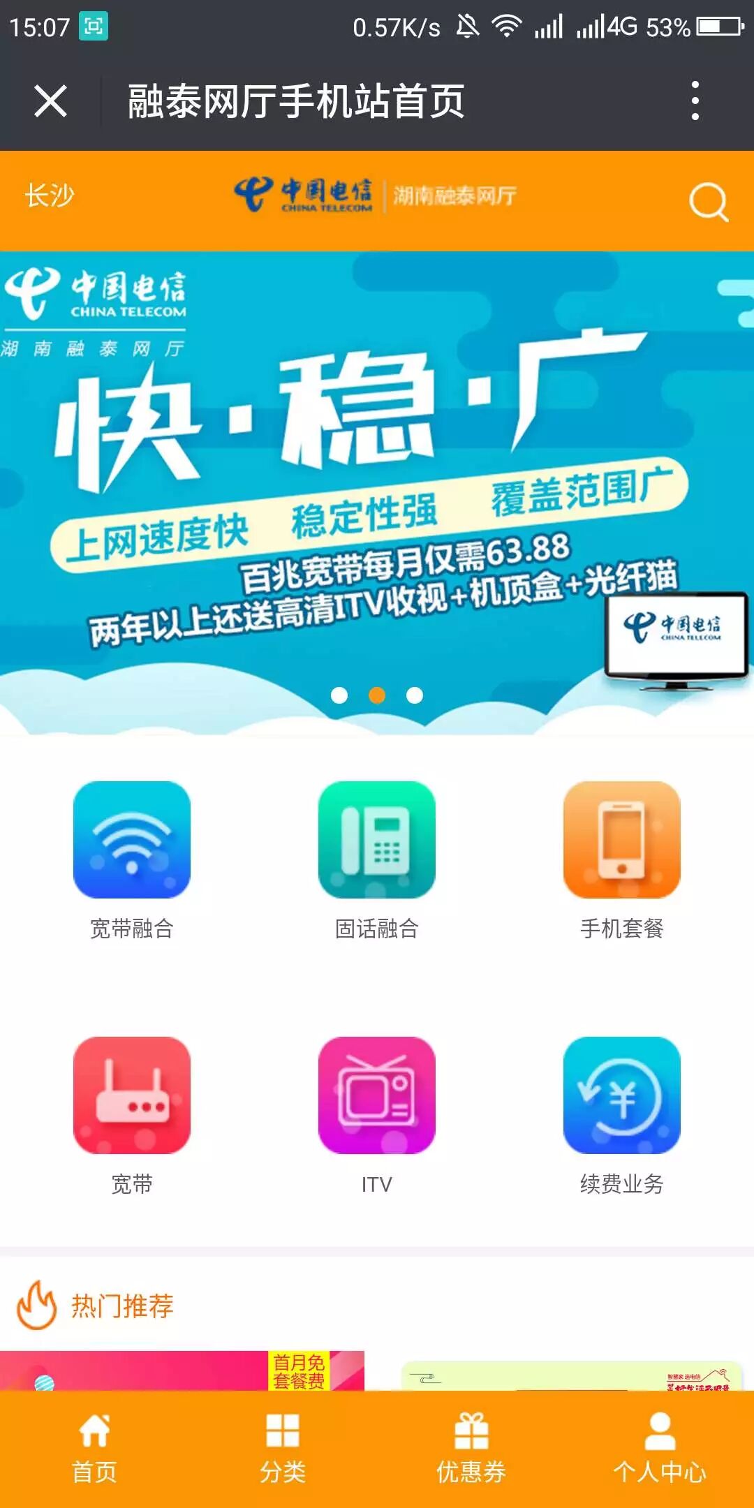 第一步:先确保自己关注湖南电信业务融泰网厅。