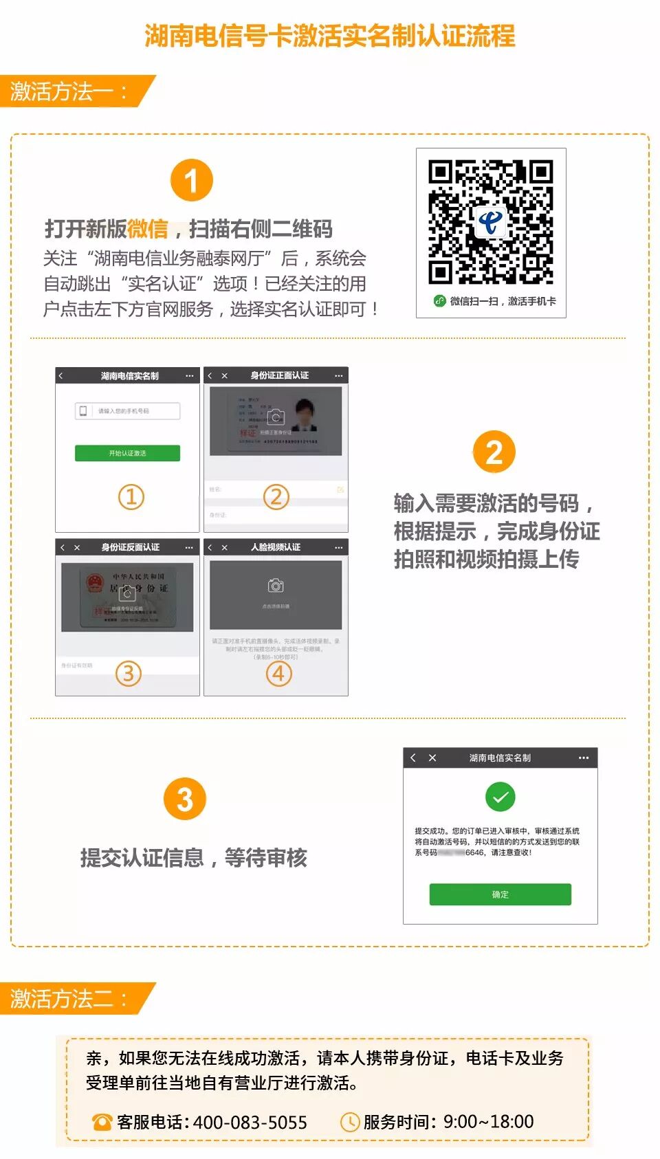 关注微信公众号“湖南电信业务融泰网厅”后,点击官网服务选择实名认证即可。