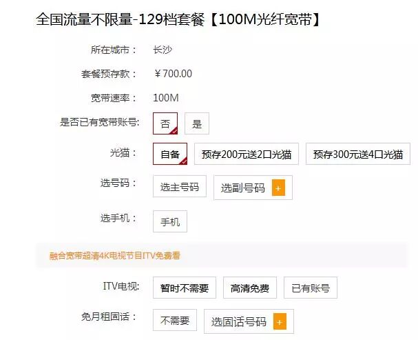 单宽带单卡都是直接下单的,融合宽带就稍显麻烦!